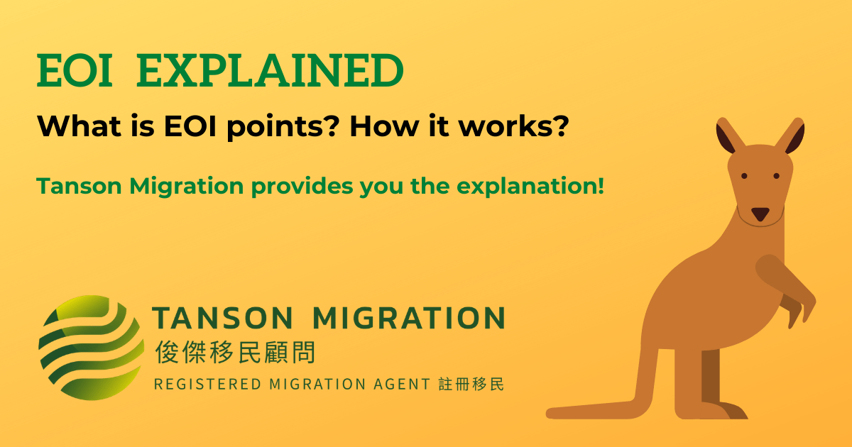 Certain work and business visas require an Expression Of Interest (EOI) to be submitted. This is a points system and invitations depend on the points a potential visa applicant can score. The higher score, then better chance of an invitation. Here is an explanation of how it works.